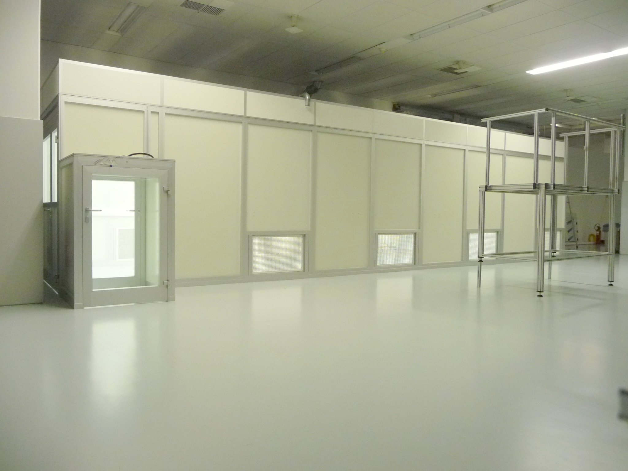 Bau eines zusätzlichen Reinraumes in einen bestehenden Reinraum. Größe ca. 40m², ISO Klasse 5, komplett als Raum-in-Raum-Lösung mit der Lieferung und dem Einbau von FFU’s, Beleuchtung, sowie der gesamten Raumstruktur.